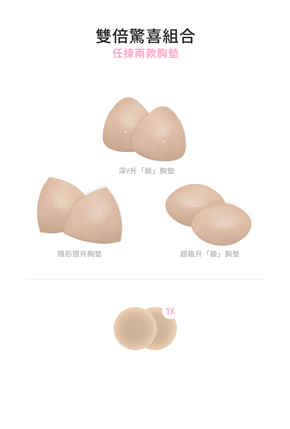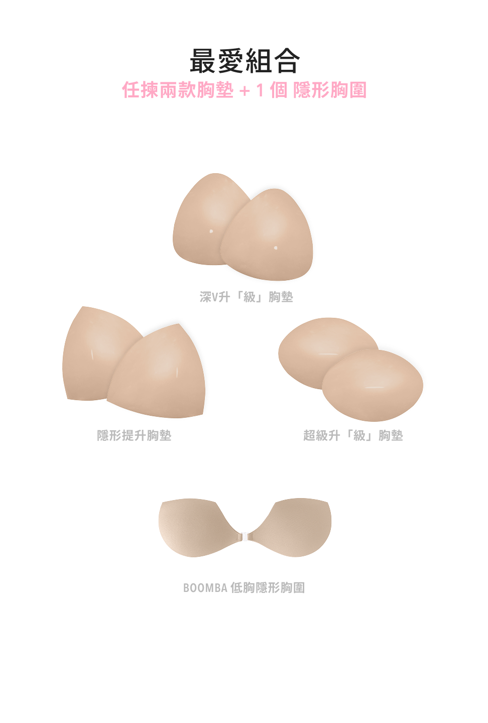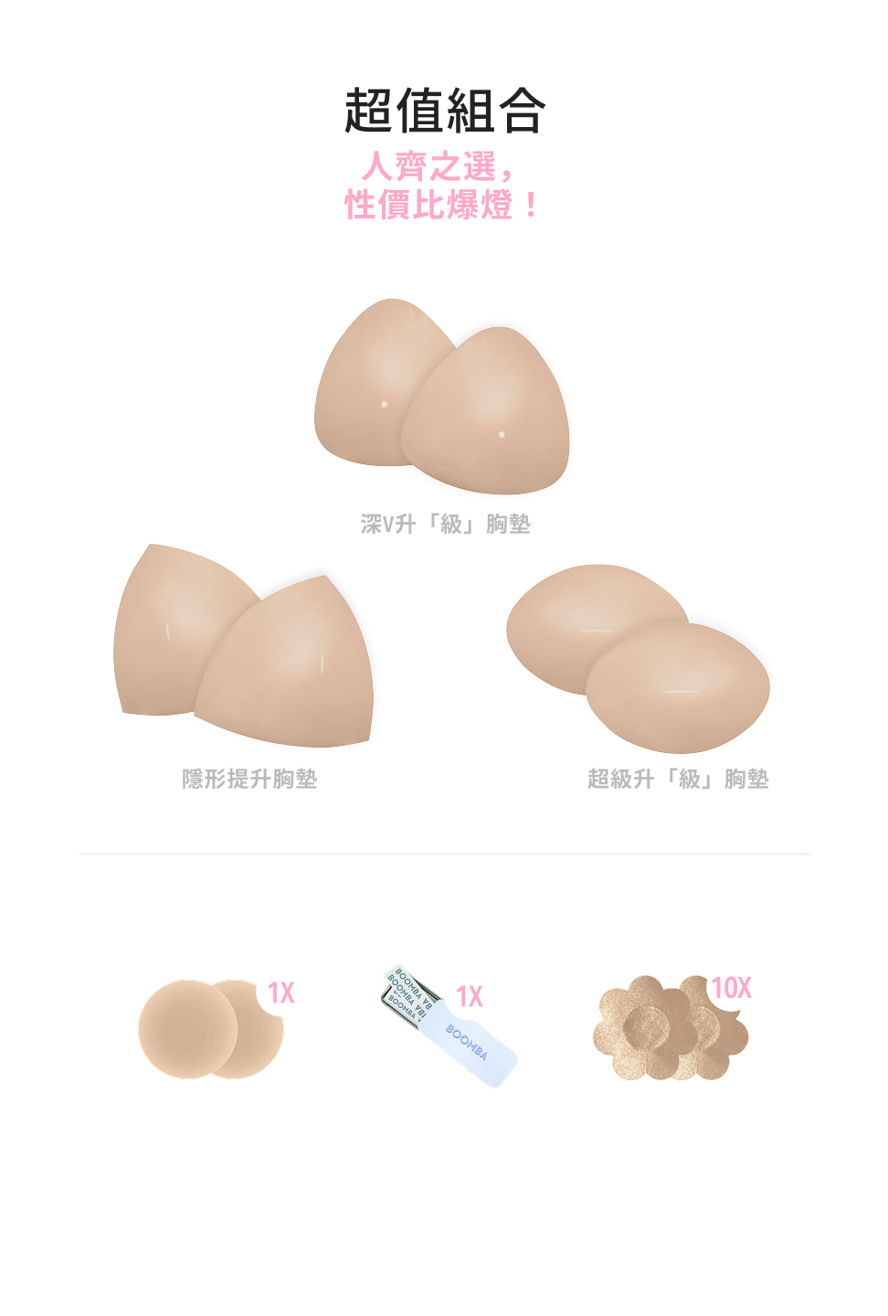 BOOMBA 胸墊有獨特專利設計,具備即時提拉效果,𣊬間提升 2 個 Cup Sizes!一著上身即刻打造完美乳溝!