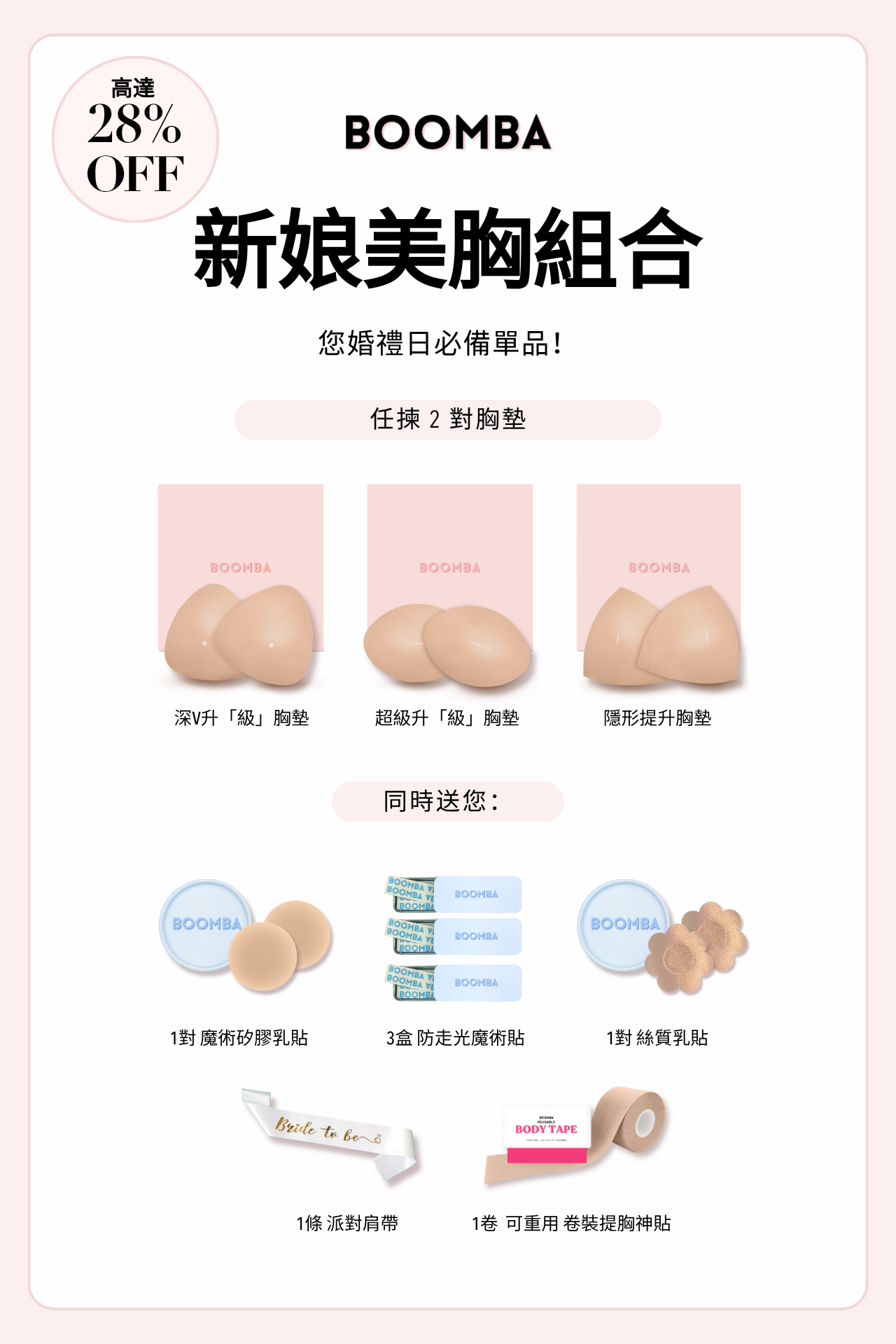 BOOMBA 胸墊令你免受傳統 Bra帶同 Bra 扣既限制!以後你可以更自信咁著上婚紗、Bikini 同其他低胸穿搭。