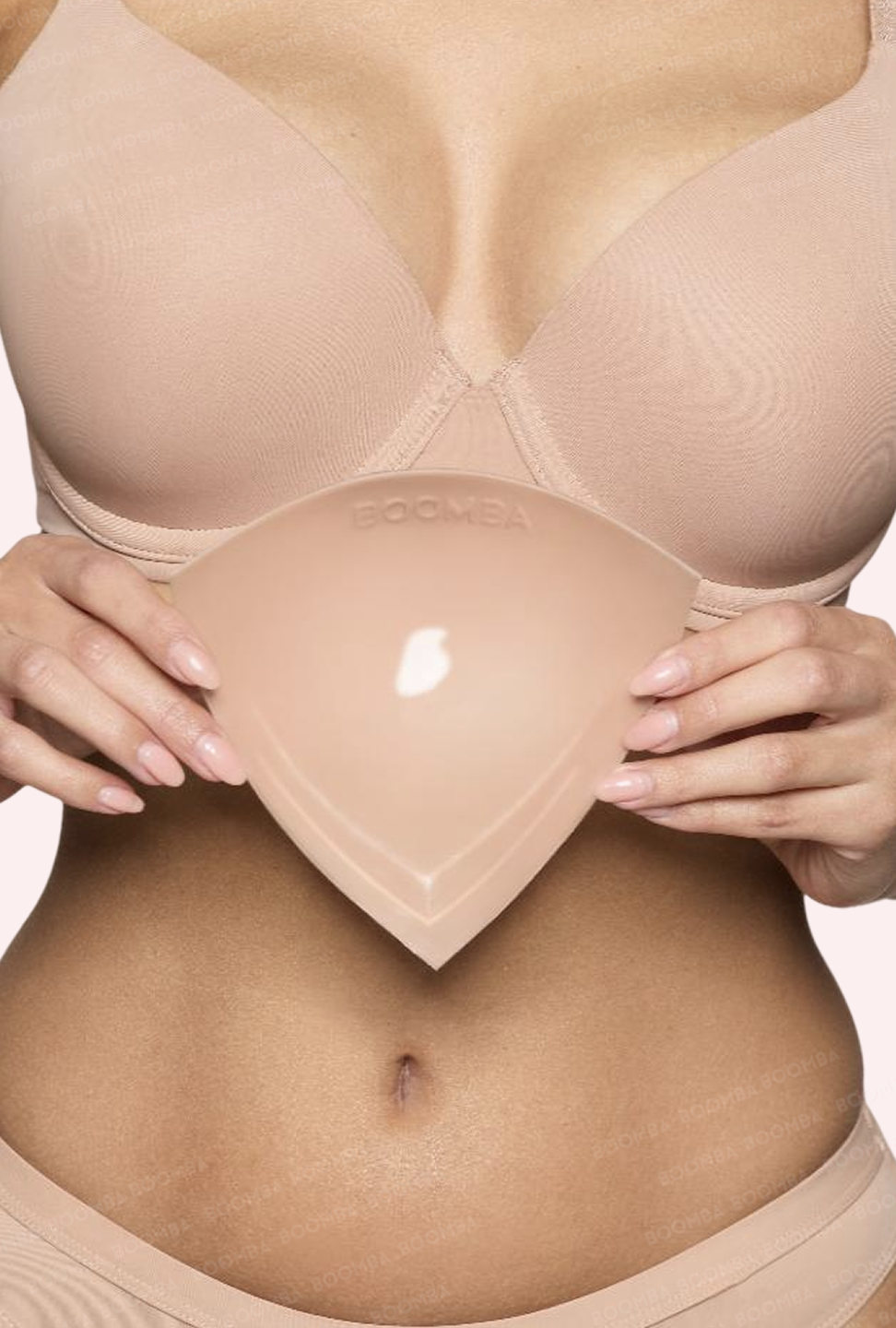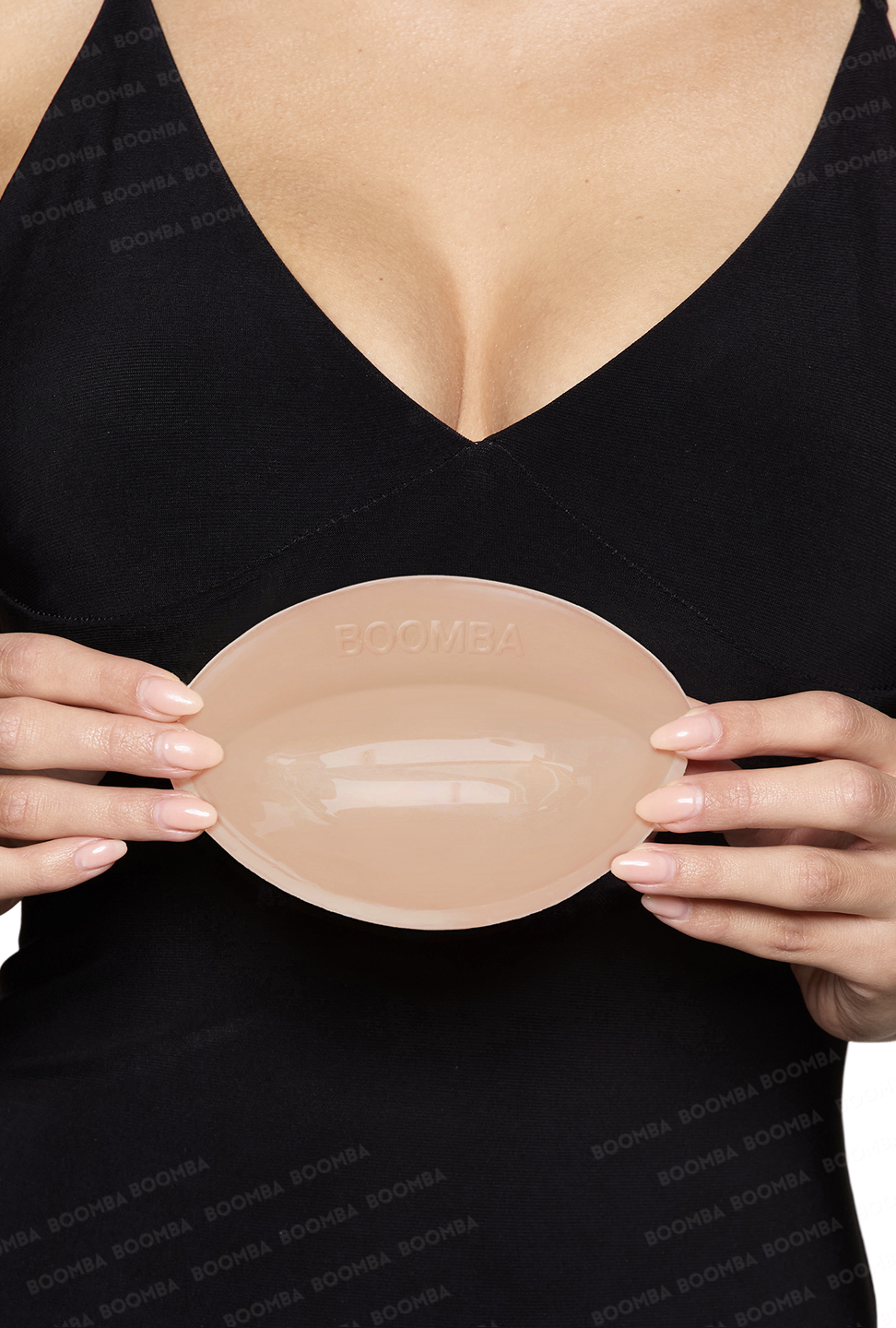 BOOMBA 獨家胸墊已經取得專利,胸墊兩面都帶有黏性,一面黏貼喺你嘅皮膚,另一面固定於你嘅衣物上,可以預防走光,又同時確保隱形貼服。