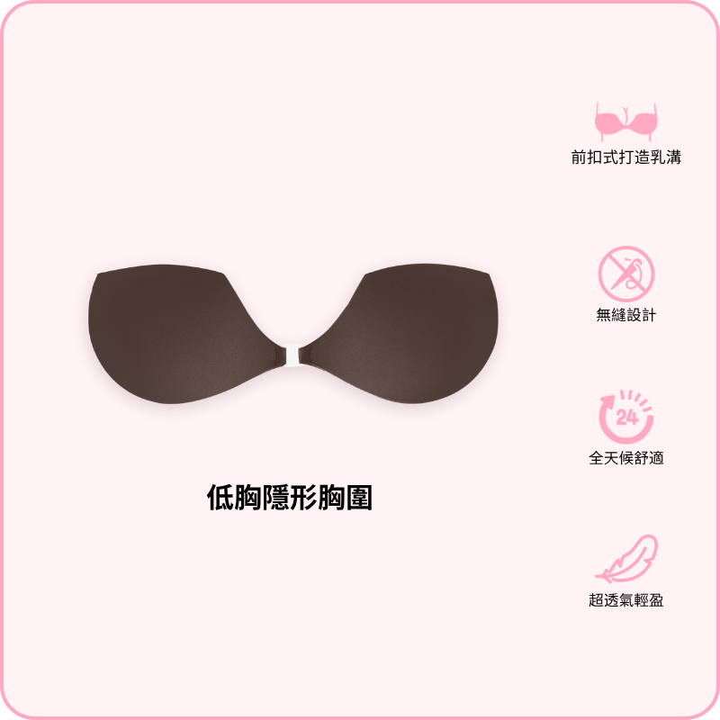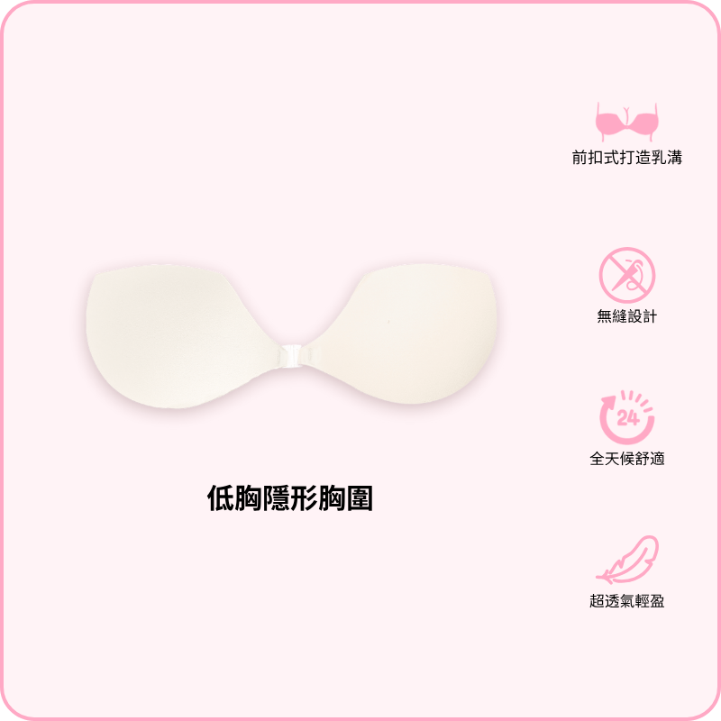 隱形提升胸墊: 薄墊款式,專門提拉塑形,唔會額外升 Cup,最啱配搭 Deep V 打扮同三角形比堅尼。