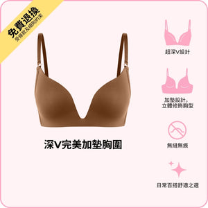 準備好展現驚艷事業線未?深V完美加墊胸圍,帶來明顯托高同完美曲線,同時完全隱形,就算最低胸位剪裁都冇問題。配有立體模杯,幫你自然托高兼修飾胸型,加埋超低胸設計,無論派對晚裝定深V襯衫,都着得靚又安心。