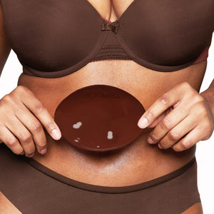 While scooping, press the insert onto the breasts and press firmly to secure.