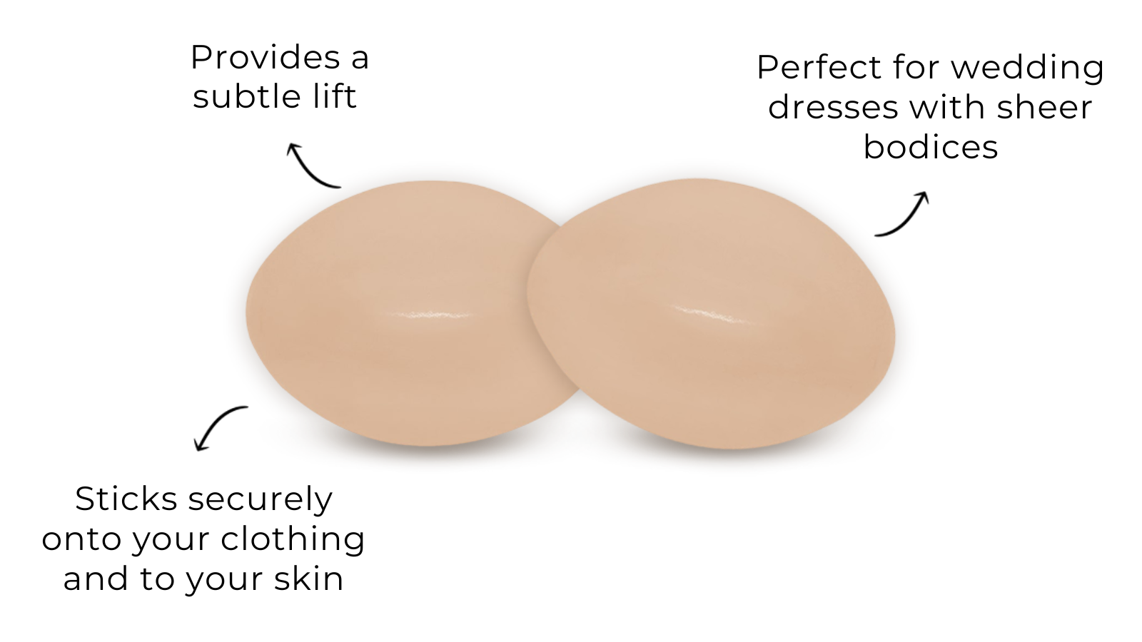 These lightly padded inserts are specifically designed to provide a subtle lift while also providing security against embarrassing wardrobe malfunctions. Perfect for wedding dresses with sheer bodices.