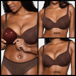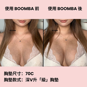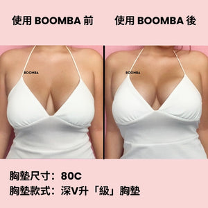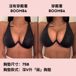 請注意,成效因乳房大小和形狀而異,效果將類似於雙重提升胸圍。 BOOMBA 胸墊最適合用於天然乳房。