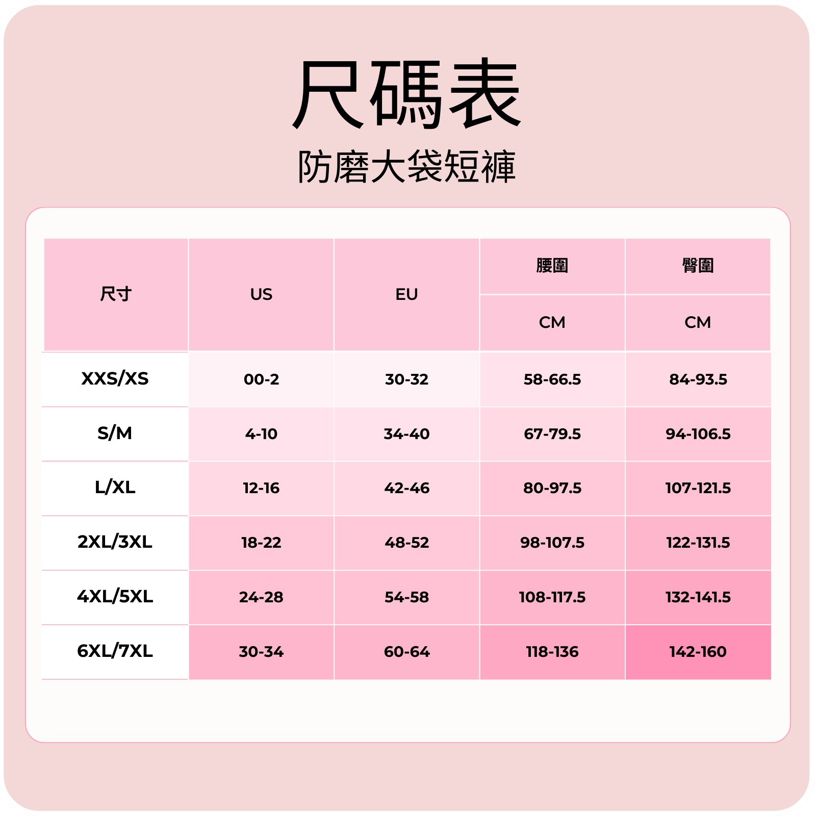 BOOMBA 防磨大袋短褲尺碼指南