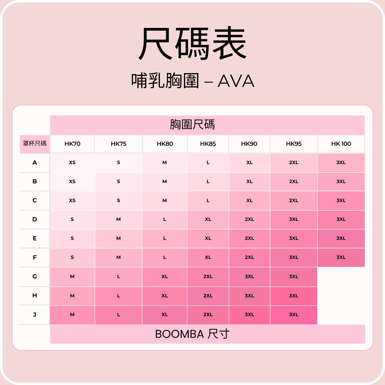 BOOMBA 哺乳胸圍 - Ava 尺寸表