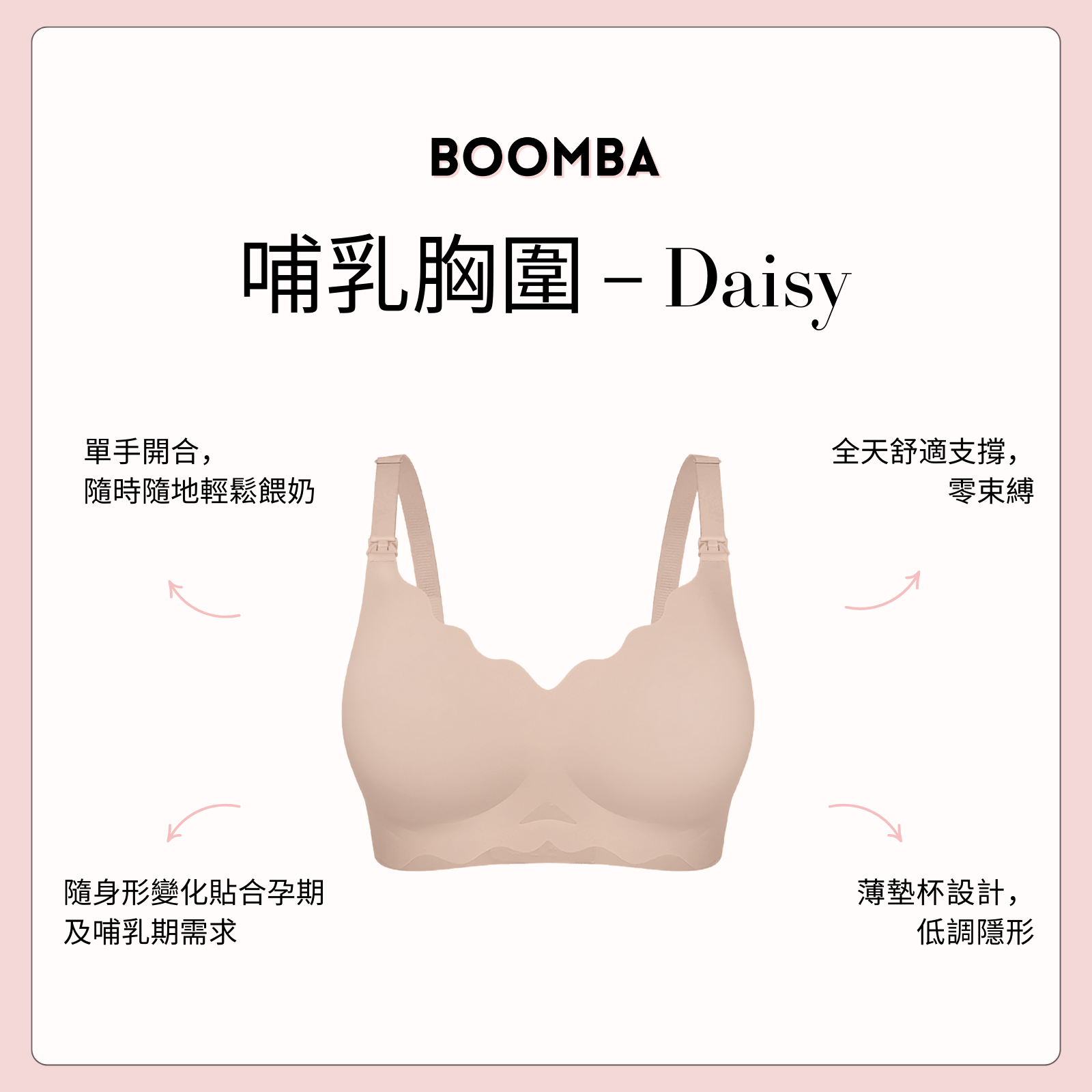 由餵奶到抱抱寶寶嘅甜蜜時光,BOOMBA 哺乳胸圍讓您專注最重要嘅事——同寶寶建立親密連結。