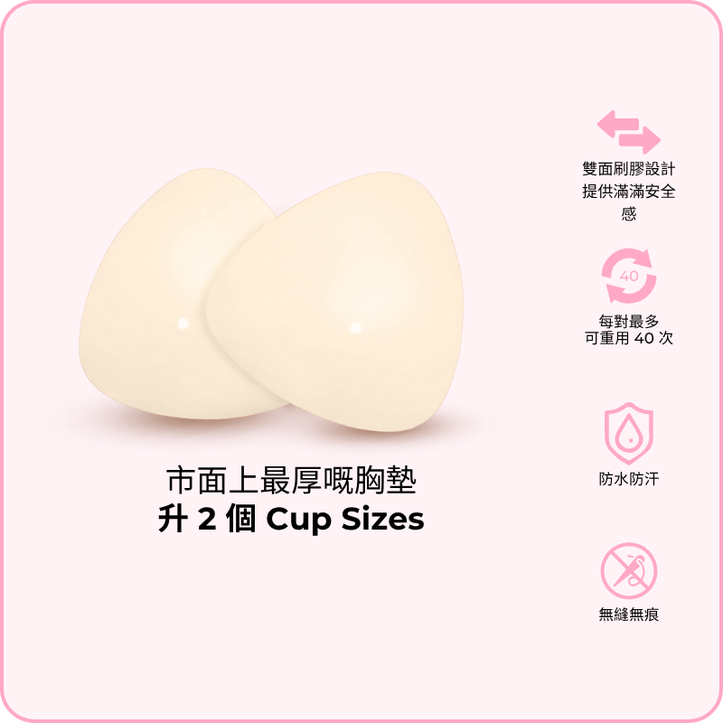 豐滿升cup?我們最有push up效果的胸墊深V升「級」胸墊非常適合想要加大尺寸(多達 2個 cup size)的用戶!專為V領上衣設計!