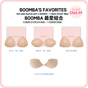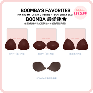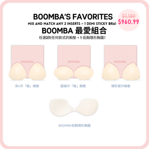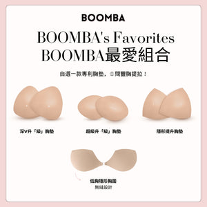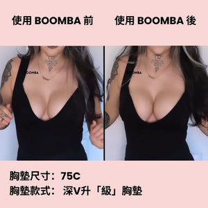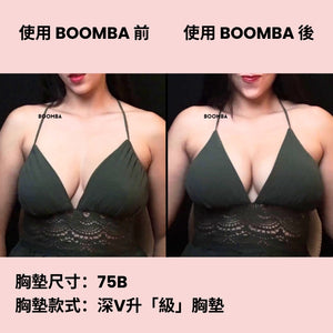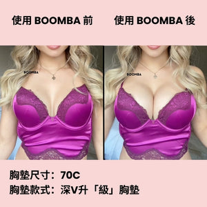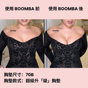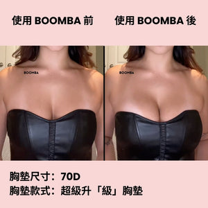 請注意,成效因乳房大小和形狀而異,效果將類似於雙重提升胸圍。 BOOMBA 胸墊最適合用於天然乳房。