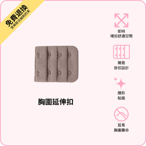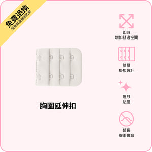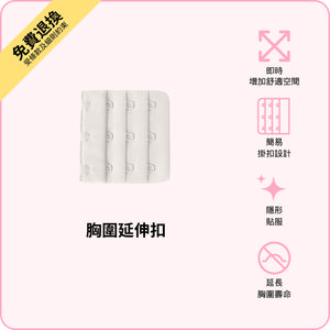 這並非將就穿不合身的胸圍,而是讓你的衣櫃更具彈性。 柔軟又靈活的設計可輕易扣上舒適系列系列或孕婦系列胸圍,讓你即時增加 1–2 吋的舒適空間,同時保持理想支撐度。特別適合哺乳中的媽媽,全程都能自由調整。外觀平滑貼服,完全隱藏於衣物之下。