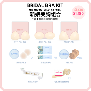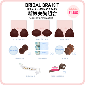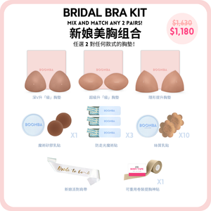 BOOMBA 新娘美胸套裝包含新娘所需嘅一切,幫你為婚禮做好充分準備。 從防止滑落失光到打造豐滿外觀,呢個套裝都可以滿足你嘅需求。