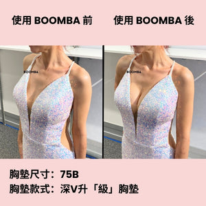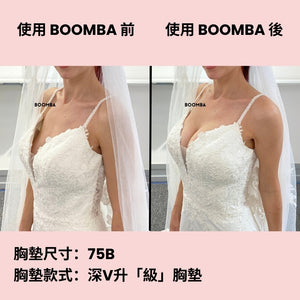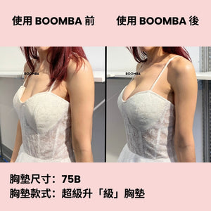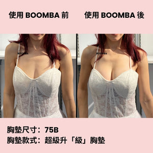 請注意,成效因乳房大小和形狀而異,效果將類似於雙重提升胸圍。 BOOMBA 胸墊最適合用於天然乳房。