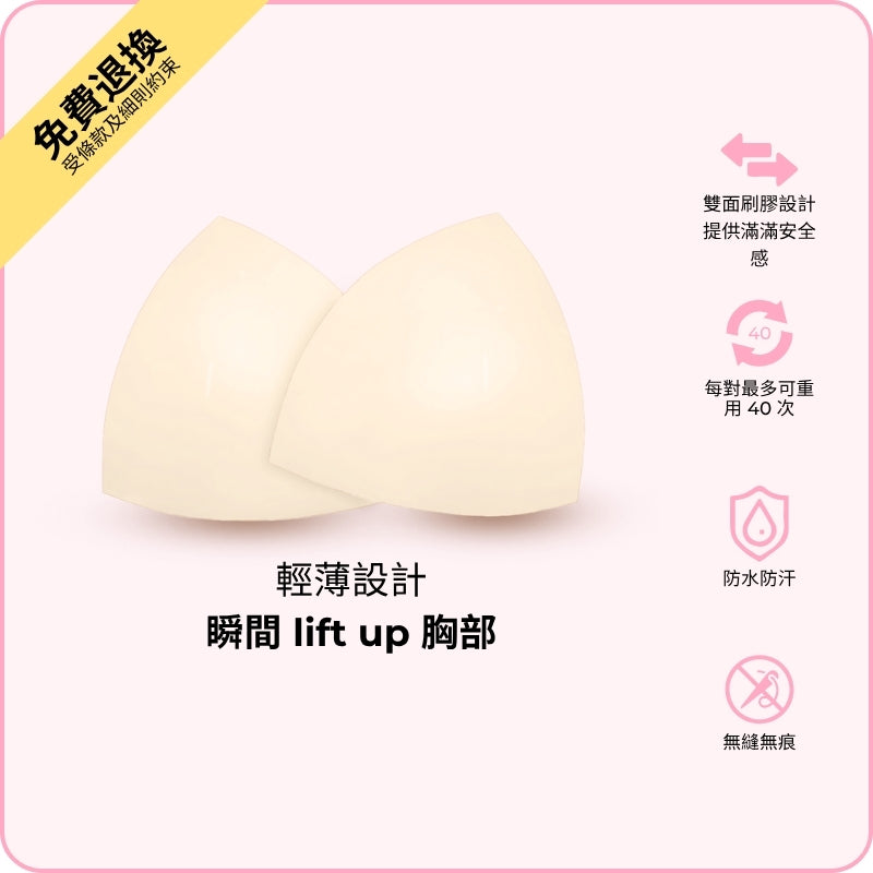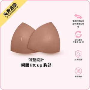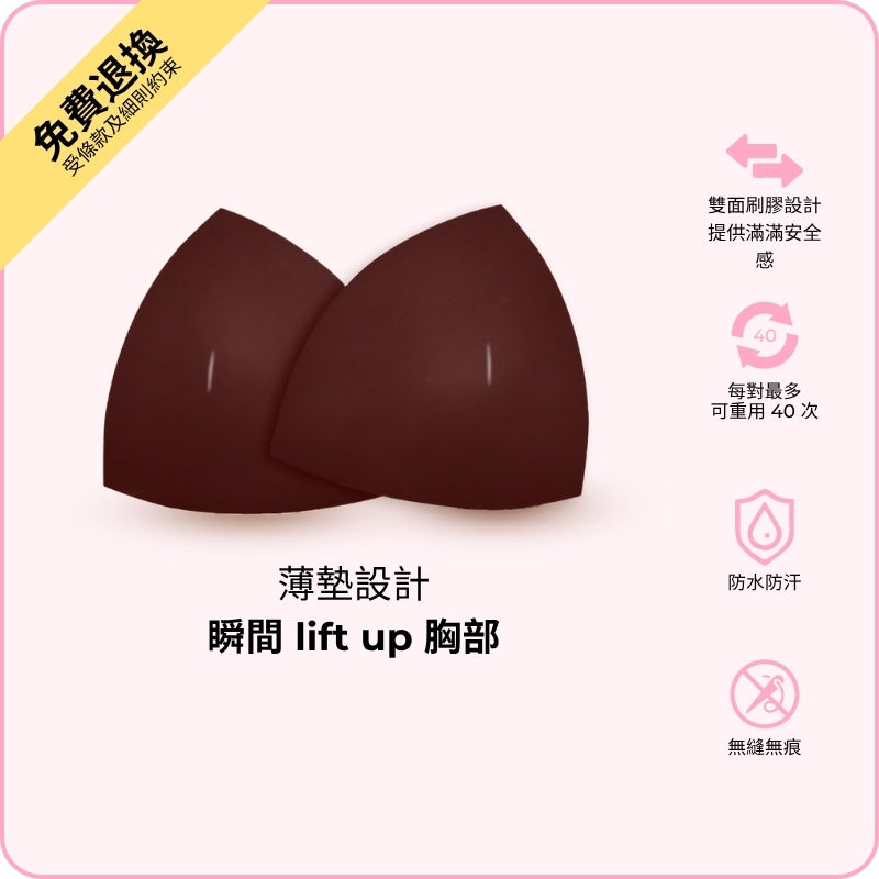 隱形提升胸墊: 薄墊款式,專門提拉塑形,唔會額外升 Cup,最啱配搭 Deep V 打扮同三角形比堅尼。