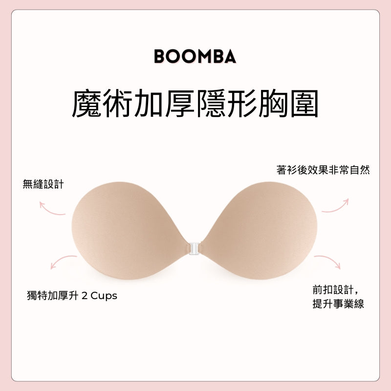 BOOMBA 黏性胸圍入面有天然填充物,唔會好似其他 NuBra 咁笨重,設計完美貼合胸部,輕鬆打造自然豐滿嘅曲線身材!