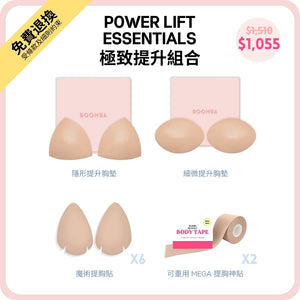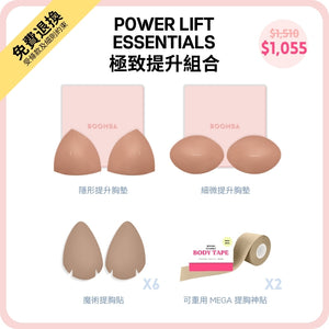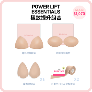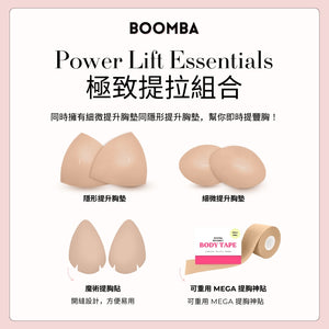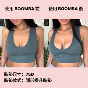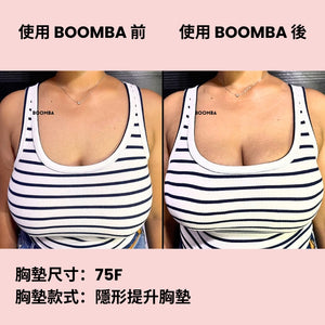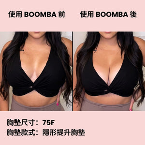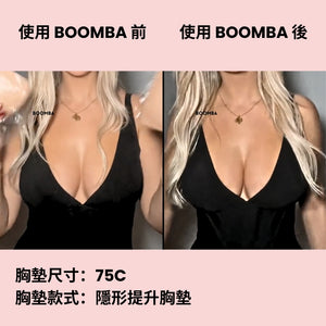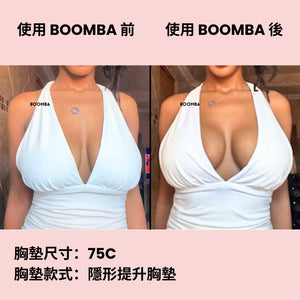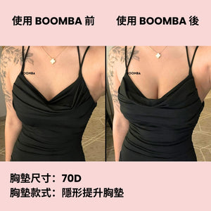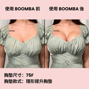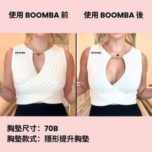 請注意,成效因乳房大小和形狀而異,效果將類似於雙重提升胸圍。 BOOMBA 胸墊最適合用於天然乳房。