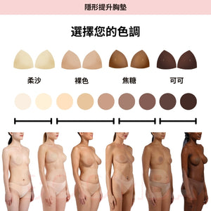 隱形提升胸墊: 薄墊款式,專門提拉塑形,唔會額外升 Cup,最啱配搭 Deep V 打扮同三角形比堅尼。